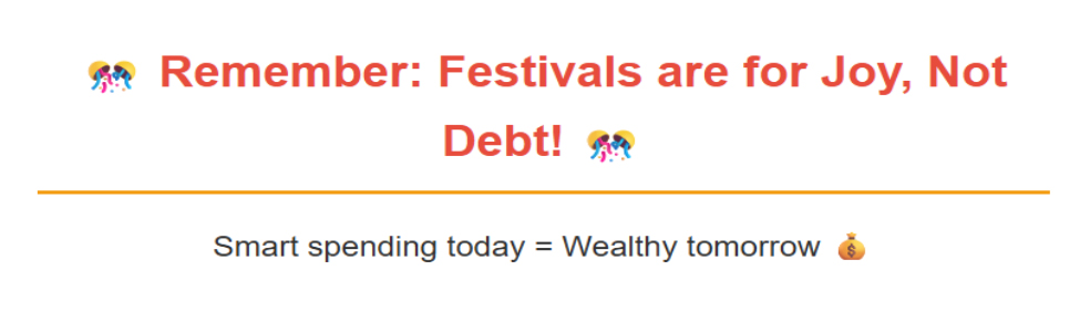 This opportunity cost is the real price of festival overspending. Every EMI payment reduces your capacity to build wealth for important goals like children’s education, retirement, or property purchase.
