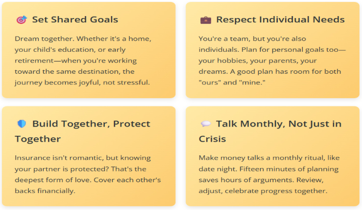 We’ve seen this pattern countless times. Both partners are responsible. Both are earning well. Both want the best for their family. But without a shared financial plan, they’re like two people rowing a boat in different directions—lots of effort, very little progress, and plenty of frustration.