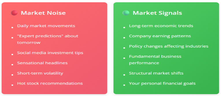 Let us tell you something that might surprise you. Most of what you read, watch, and hear about the stock market every day is noise. Not signals. Just noise. And here’s the painful truth: this noise is designed to grab your attention, not to help you make better decisions.